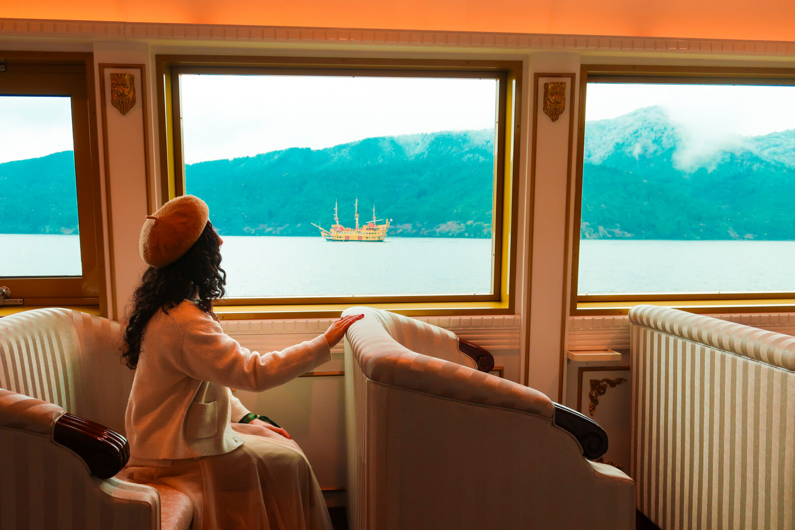 I waved goodbye to Motohakone Port and boarded the Royal II, which boasts an ornate design inspired by the 18th-century French flagship Royal Louis. The elegant first-class cabin, quiet atmosphere, and access to a private deck made me feel like royalty as I sat back and soaked in the panoramic lake views in comfort.