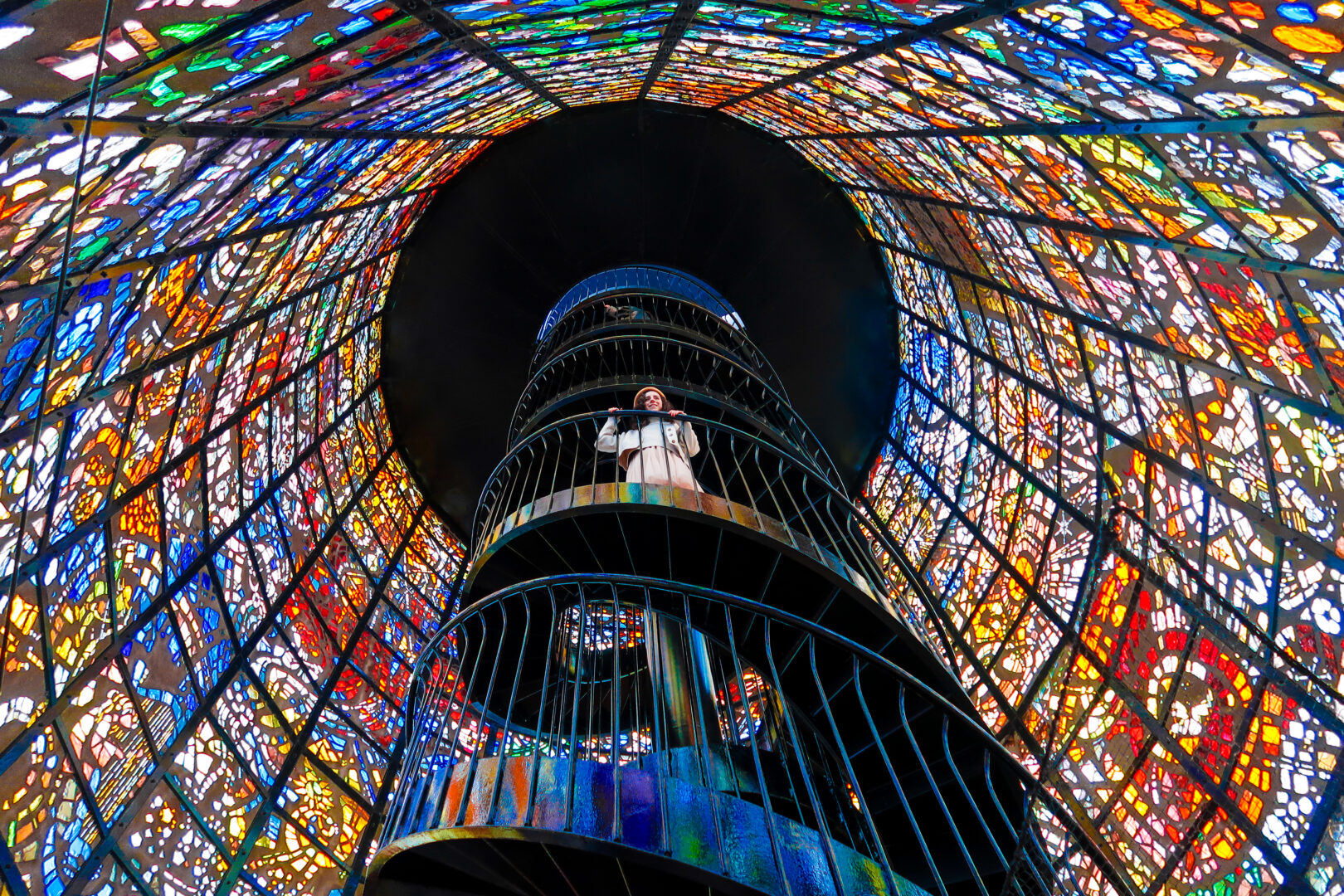 For me, the biggest highlight was climbing inside the colorful stained-glass tower of the Symphonic Sculpture. As I stepped inside, sunlight streamed through the vibrant panels, casting shifting patterns of red, blue, and gold across the spiral staircase. The effect felt almost hypnotizing, as if walking through a glowing kaleidoscope.