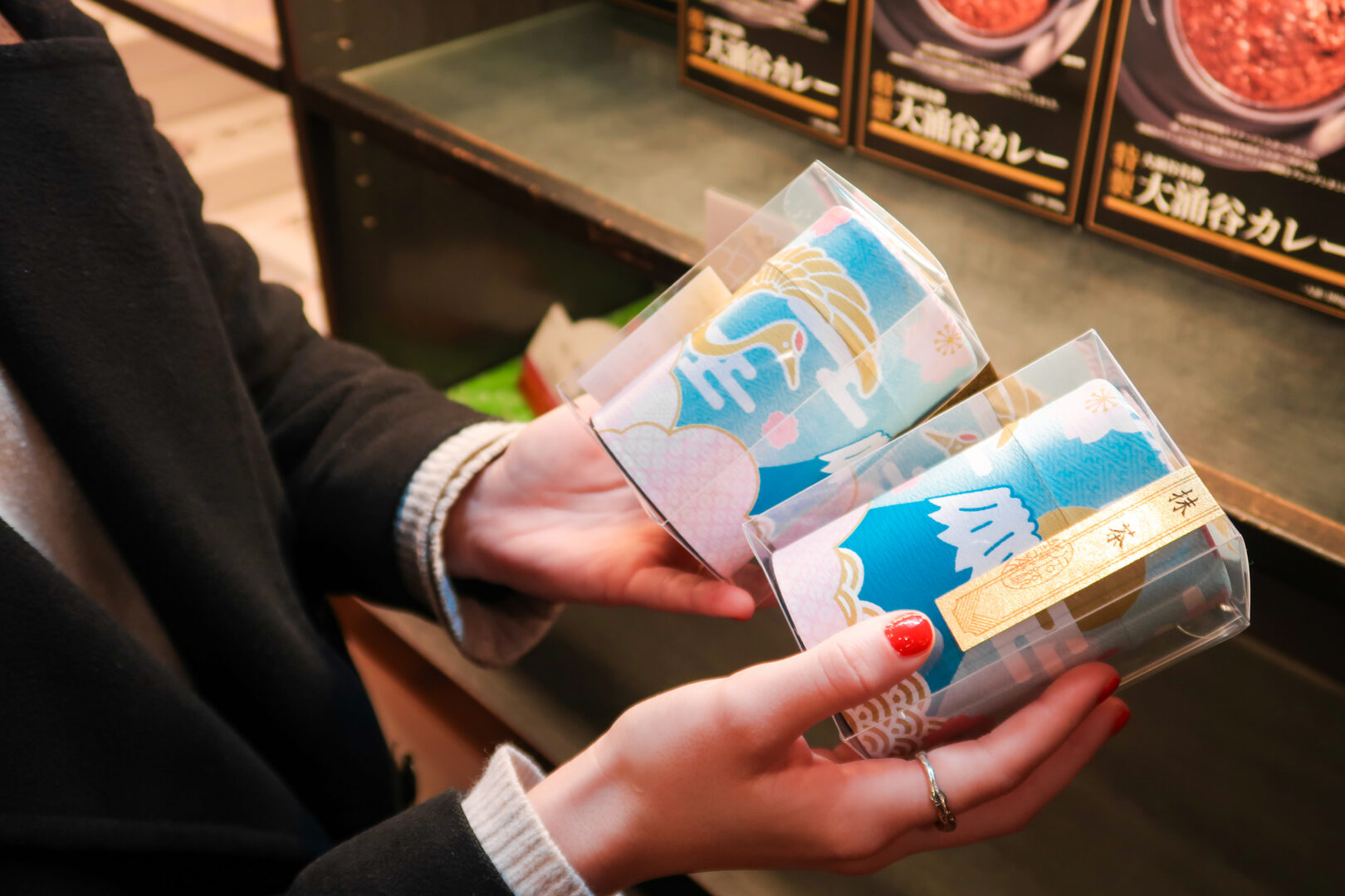 Making my way back to the ropeway, I popped into Tani no Marché, a souvenir shop right by Owakudani Station. Inside, I found a wide range of Hakone souvenirs, including the popular richly Owakudani-kare (special Owakudani curry) inspired by Owakudani’s volcanic landscape – a unique local specialty to take home. I also came across Mt. Fuji-themed keepsakes like the “Fujisan-oshi Bottle,” whose inwardly curved base is shaped like Mt. Fuji. I loved that it can be paired with matching bottle caps topped with a 2D acrylic Mt. Fuji figure, available in a variety of colors, making it feel more fun and customizable.