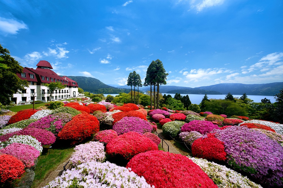 Located on the former estate of a baron, this hotel's vast garden offers breathtaking views of Lake Ashi and the majestic Mt. Fuji. The garden is famed for its azaleas, but throughout the year, visitors can also enjoy cherry blossoms in spring, hydrangeas in early summer, roses in summer and autumn, and vibrant fall foliage. Strolling through the beautifully maintained grounds is a serene experience.
