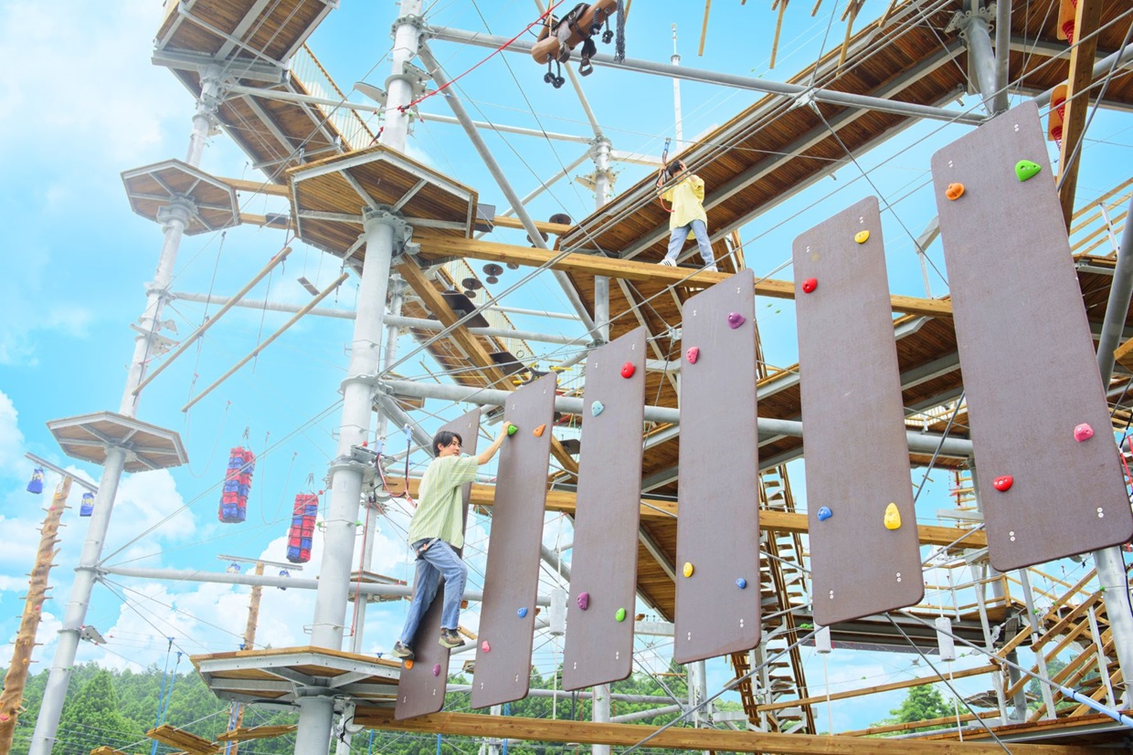 This athletic facility is a striking structure with hexagonally arranged steel pillars. It features three levels of platforms, each offering different activities. The heights are 3m, 8m, and 13m, and participants are equipped with safety harnesses to enjoy various routes within a set time. Activities are color-coded by difficulty, increasing with each level. There’s also a 1m-high kids’ course, making it suitable for all ages. Relax on the aerial deck between activities, and don’t miss the panoramic view of Mount Fuji from the 17m observation deck.