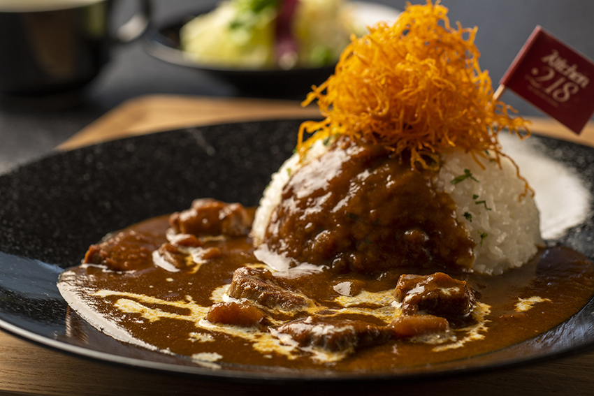 If time permits, a leisurely lunch at “Kitchen●218” near the base of the mountain is a good option. The restaurant offers a relaxing atmosphere with great views, serving dishes such as the Komuroyama Lava Curry, which uses local brand pork, and flavorful Wasabi Bowl made with local Izu specialties. The restaurant also has an attached souvenir shop offering various Izu delicacies.