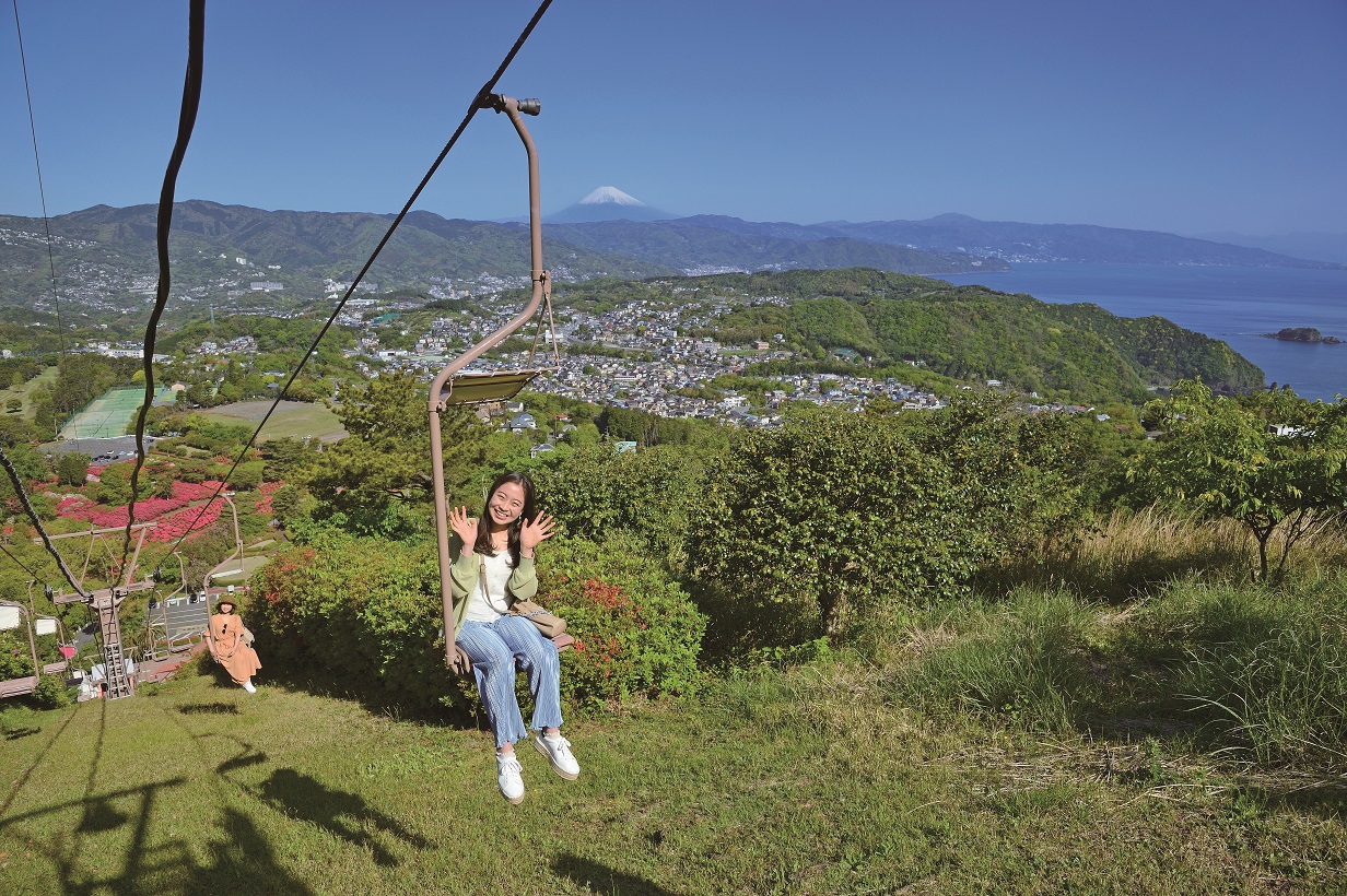 This area features the famous Komuroyama Ridge Walk MISORA. Ride the lift from the base station to the summit, where you can enjoy a panoramic view of Mount Fuji and Izu Oshima.