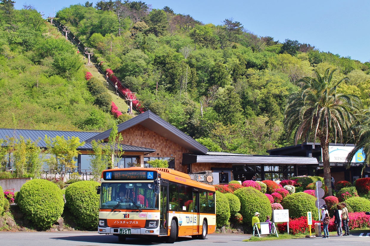 Once you arrive at Ito Station, start your Izu exploration using the Ito & Izu-Kogen 2-day pass. First, take the bus heading for Shaboten Zoo and get off at the Komuroyama Lift bus stop.