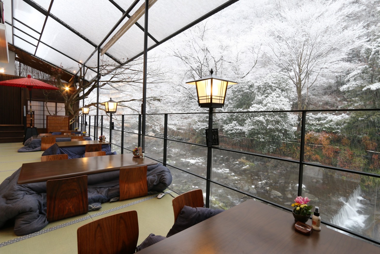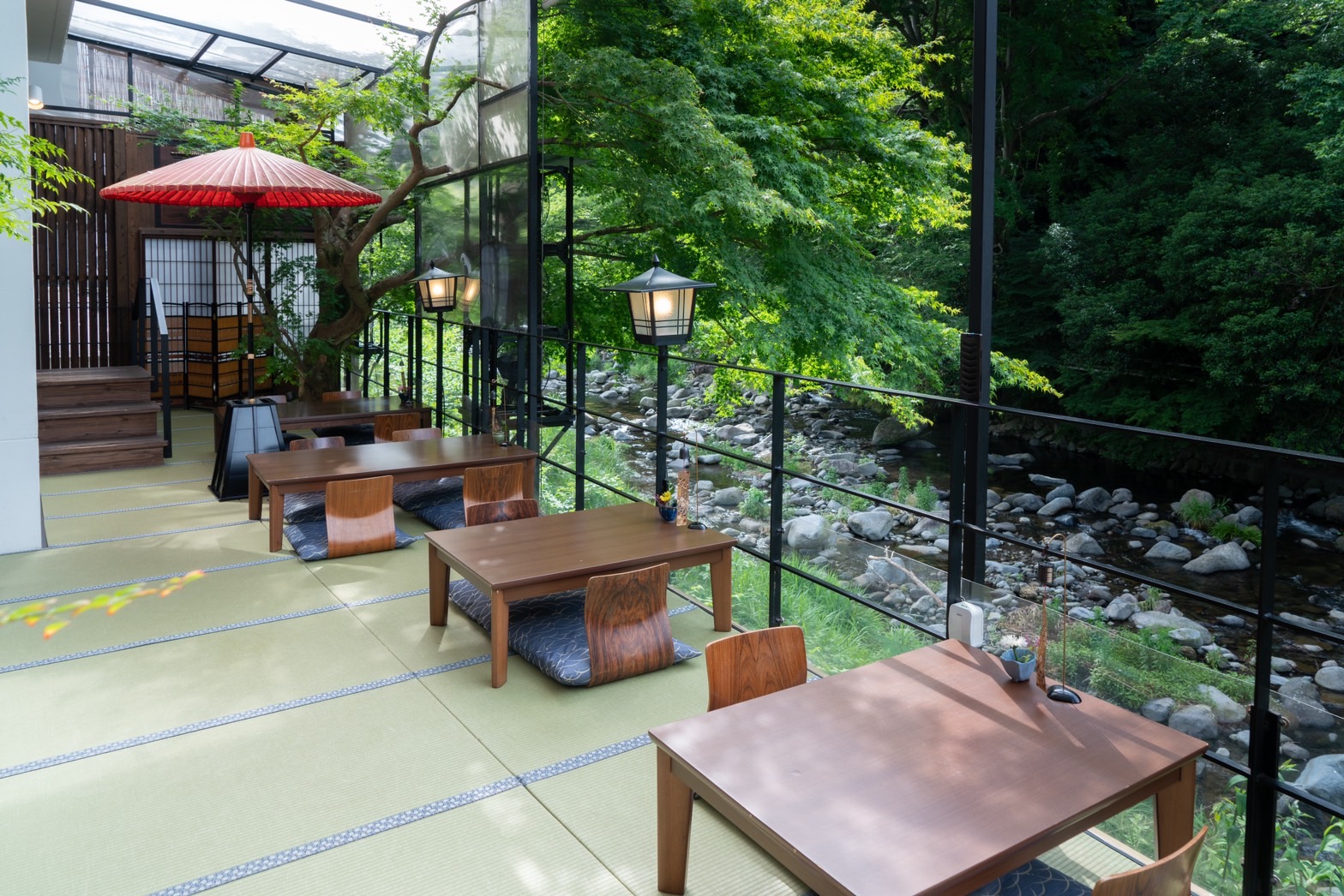 This restaurant offers the only riverside seating in Hakone, where guests can enjoy the refreshing river breeze in spring and summer or cozy up by a warm kotatsu in autumn and winter while savoring hotpot and sake. Listen to the gentle sounds of the Sukumo River as you leisurely savor the delicious flavors of wagyu.