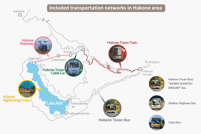 The Hakone Freepass includes the following eight modes of transportation with unlimited rides: