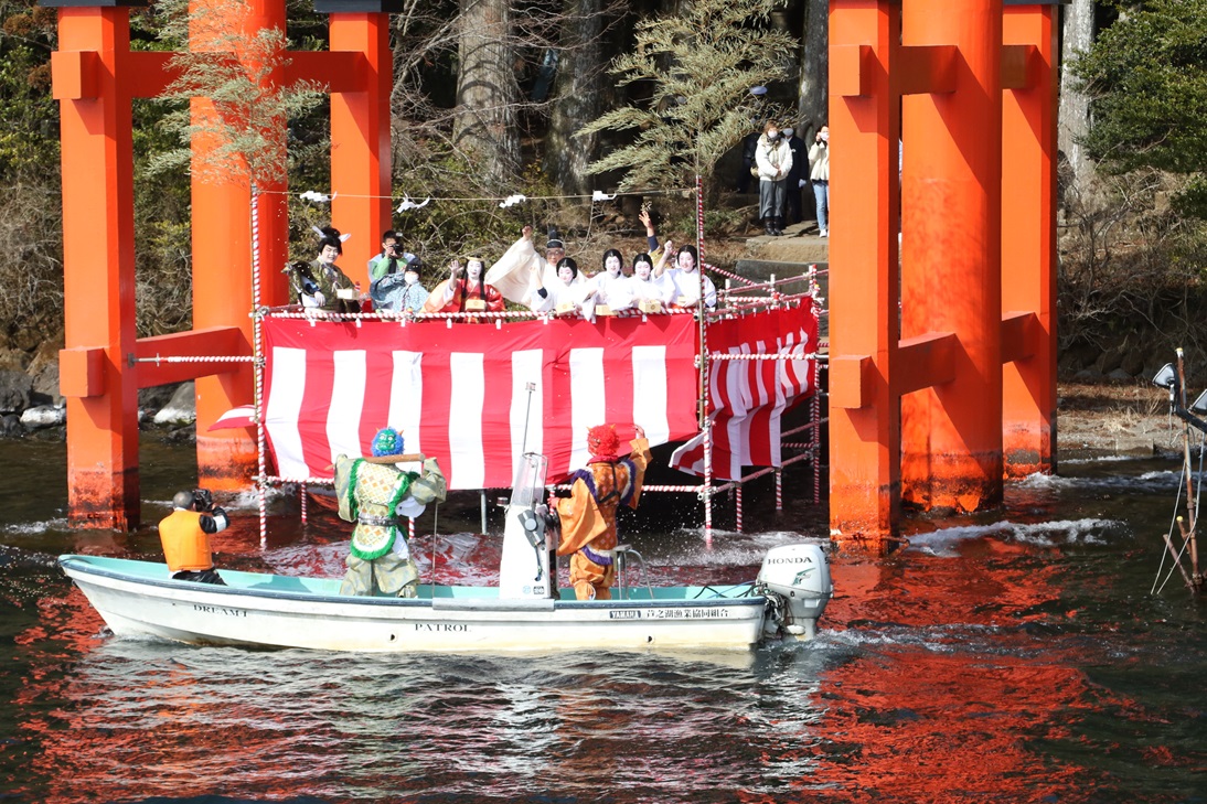 On February 2, a festival is held to prevent misfortunes and bring good fortune. The event combines the ancient "Tsuina" ceremony, a traditional ritual to drive away evil spirits, with the legend of Kintaro, a Japanese folk hero known for defeating demons. Participants witness Kintaro and his companions driving away demons, followed by a ritual where demons fleeing on water skis are vanquished with beans, symbolizing the arrival of spring. On the evening of February 1, a celebratory fireworks display also takes place at Lake Ashi’s Motohakone Bay.