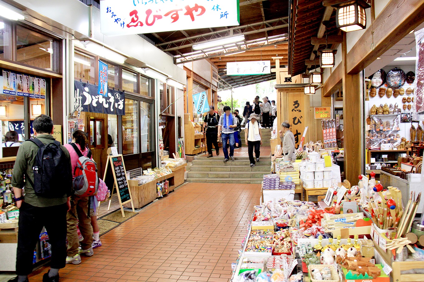 A pleasant 15-minute walk that makes you feel like you’re on a trip. Take your pick from a selection of gifts including famous local souvenirs, such as Oyama-koma (spinning tops), Oyama tofu (bean curd dishes), or even some Oyama Kyara-buki (butterbur in soy sauce).