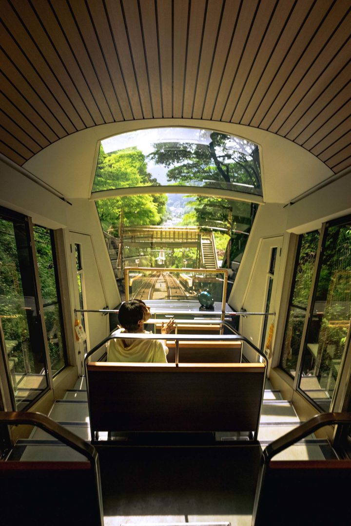 After filling up tofu dishes, the next stop is a 5-minute walk to Oyama Cable Station (Lower Station). From here you can ride a cable car that climbs up 0.8 km in six minutes to Afuri-Jinja Station (Upper Station), which is located halfway up the hillside at an elevation of 278 meters. Looking out the large windows you can gaze at the lush greenery passing by. It should make for quite a stimulating experience.