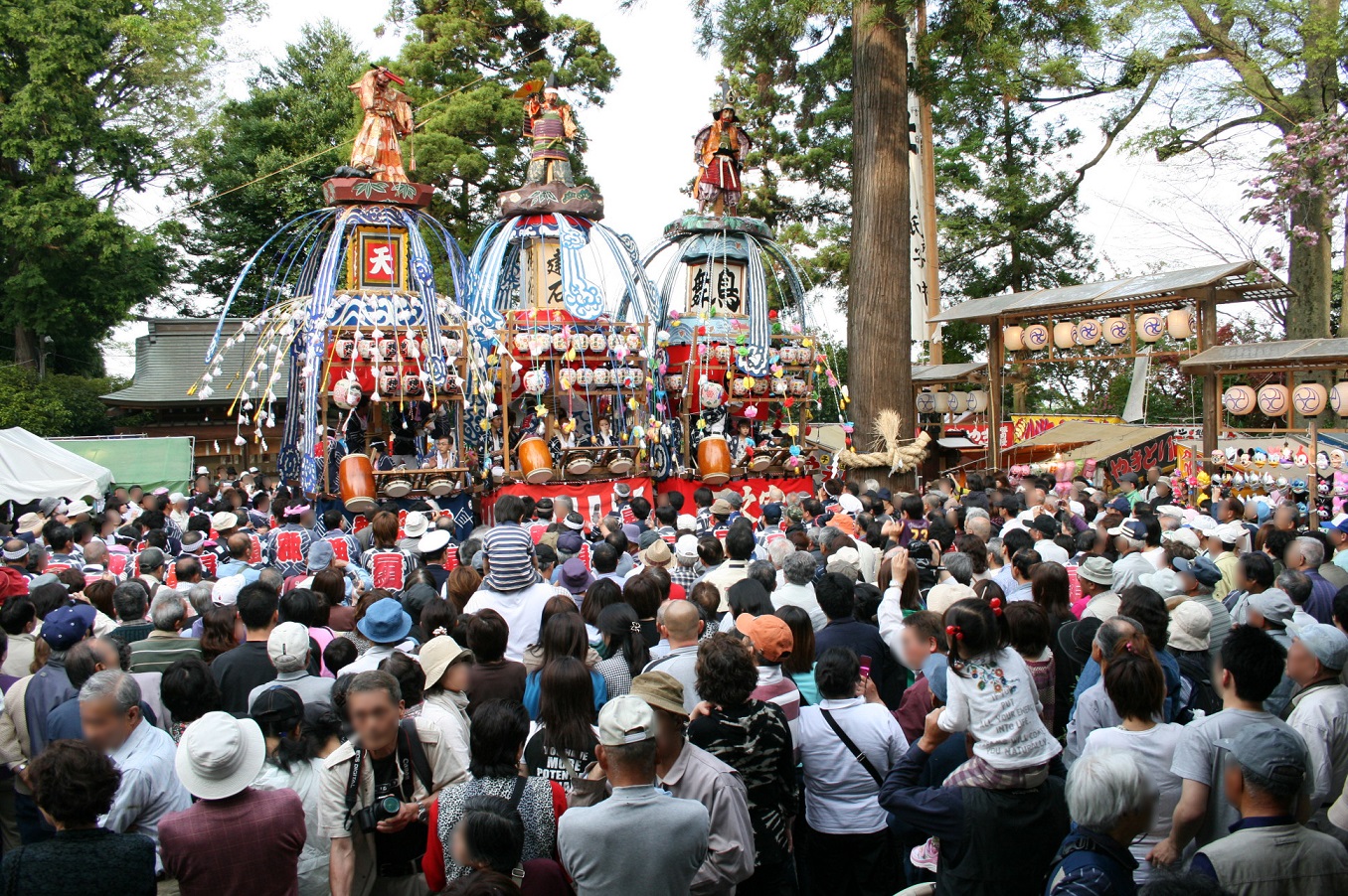 Once a year, during their “Annual Festival” (April), the precincts of the shrine are crowded with a rampaging portable shrine, three doll floats, popular ritual dances and lots of stalls. The The Sagami Kounomachi Festival, a festival that has been held since the Heian period, and the Magatama Festival (both in May), in which traditional music and dances are dedicated, attract many visitors.