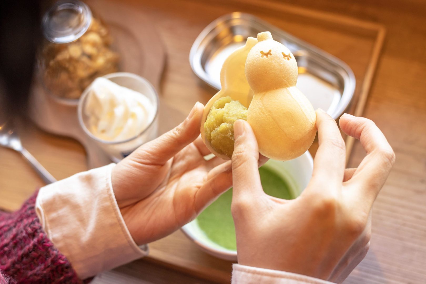 We recommend having the seasonal limited edition "An-filled Monaka" sweets. Relax in the foot bath while taking in the scenery.