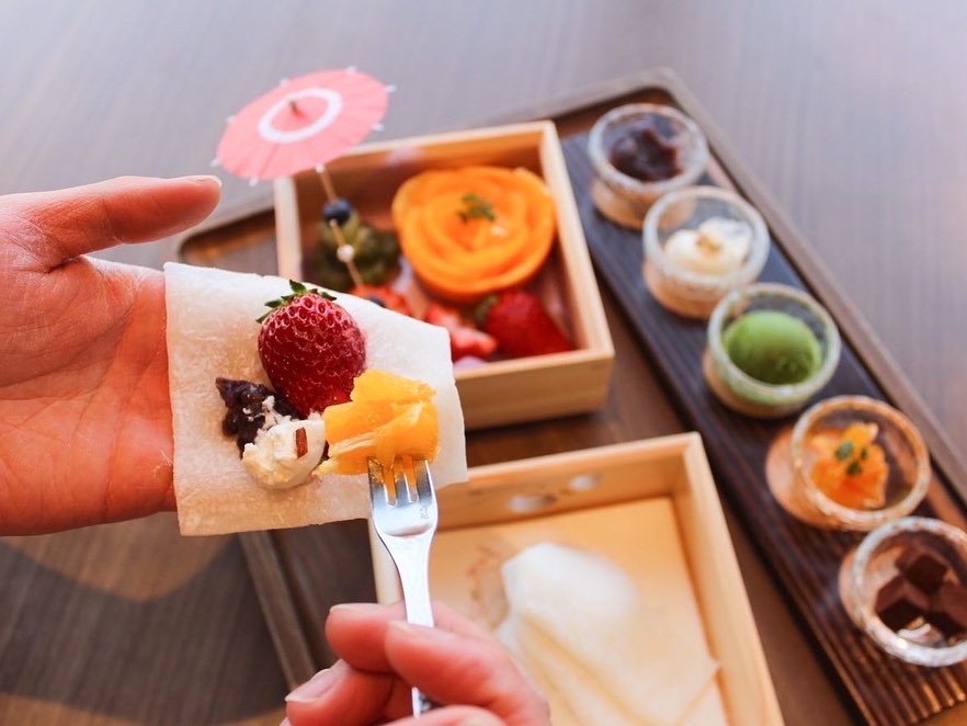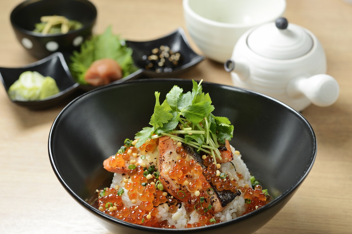 Indulge in specialty lunches such as grilled salmon and salmon roe rice served with clear soup made with groundwater from Mt. Fuji along with experimental sweets based on rice cakes like “Shichifuku Dumpling,” which you can grill yourself, and "Hand-wrapped Daifuku."