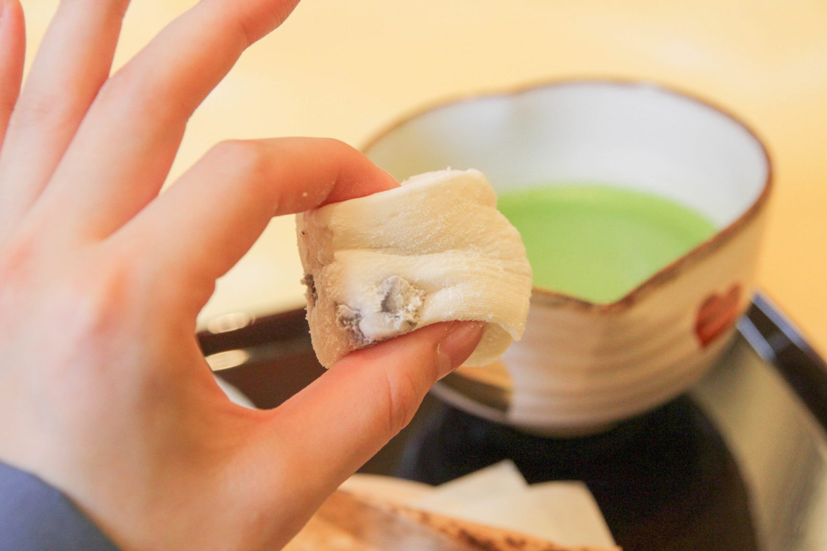 You can choose your favorite combination from around seven types of sweets and three types of tea. The most popular combination is “Yumochi” and matcha, which is considered Chimoto’s signature item.