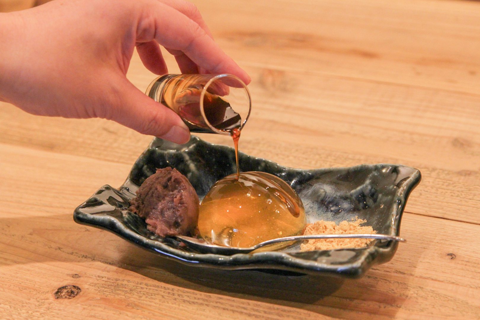 "Dragon God Ball," the restaurant's signature dish, was inspired by the legend of the dragon god that is associated with Lake Ashi. The details are a trade secret, but the slightly sweet golden-yellow jelly is made with Hakone water and “Wasanbon,” combined with grained red bean paste, soybean flour, and brown sugar syrup to your liking. Its impressive appearance is sure to make you want to capture it in photos and videos.