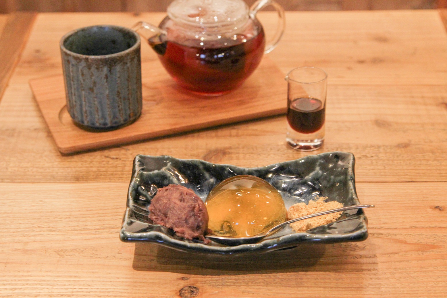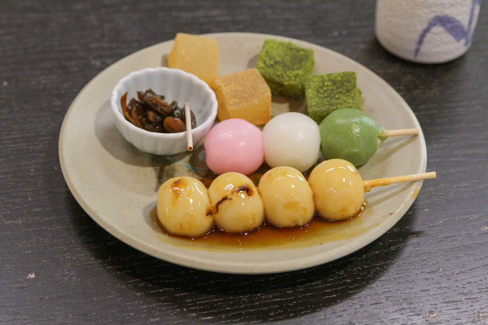 Also, if you want to share with someone, we recommend the "Ochaya Set.'. This great value set includes two types of dango, two types of “warabimochi,” pickles, and tea, and is perfect for people who want to try a variety of Japanese sweets.