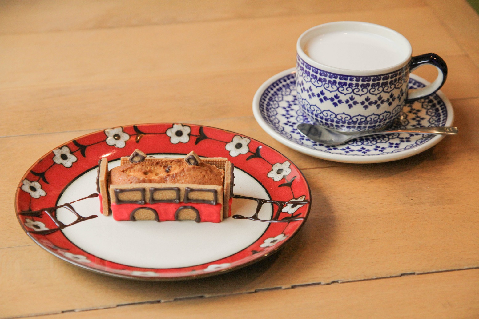 "Tokotoko Mountain Railway Pound Cake!" This cake, inspired by the mountain railway, is individually drawn by hand, so quantities are limited. The combination is perfect when served with "ginger milk,'' made by diluting homemade ginger syrup with hot milk.