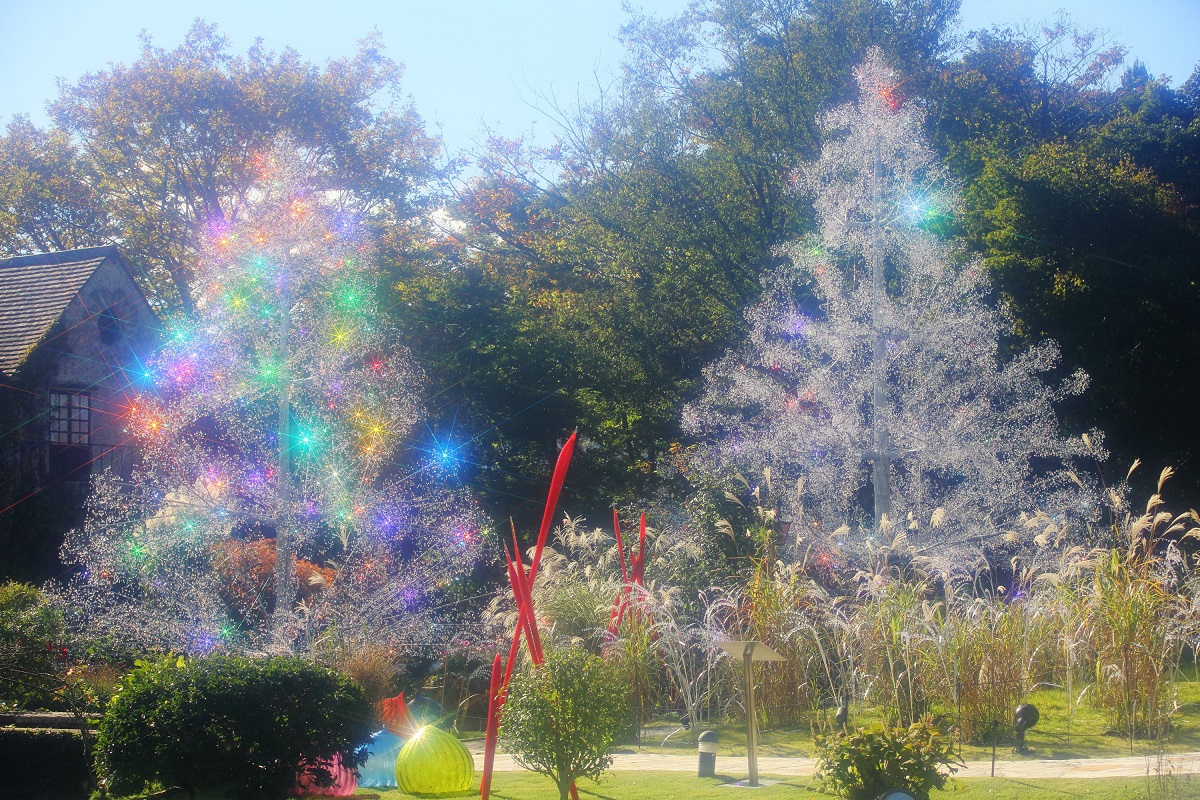 At the Hakone Venetian Glass Museum, two trees made of approximately 150,000 pieces of crystal glass are on display.