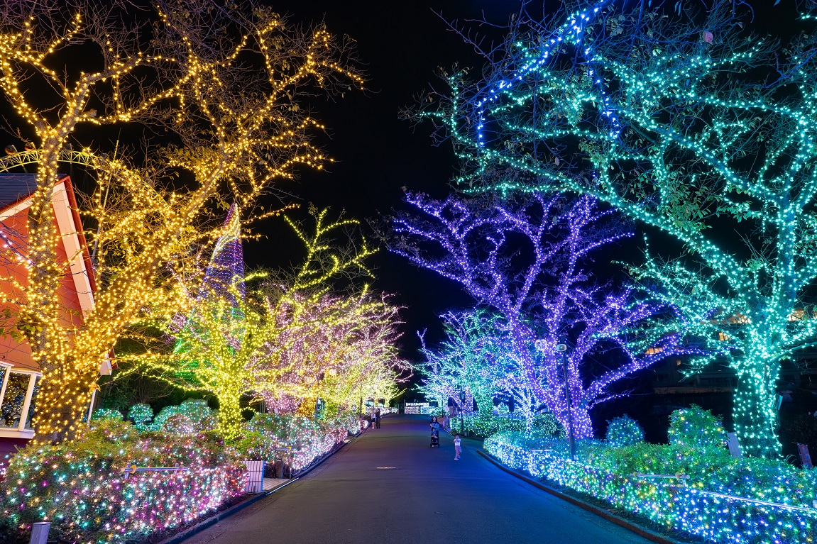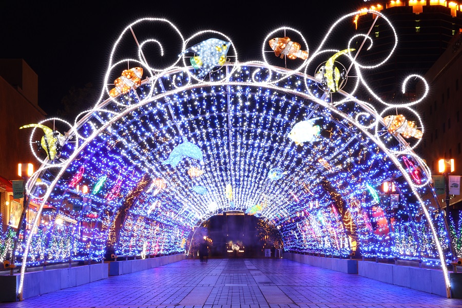 You can enjoy many illuminated sculptures such as the "Aquarium of Light," "Ball of Light," and Sanrio characters.