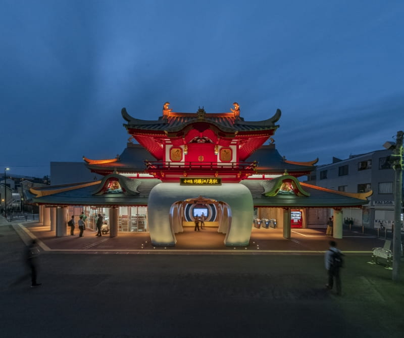 The unique Katase-Enoshima Station has been designed to look like Ryugu Castle, a palace that appears in a legend that has been passed down in the area. This station has become known as a symbol of tourism in Enoshima. Be sure to check out the jellyfish tank inside the station held in collaboration with Enoshima Aquarium. Watching the jellyfish as they drift in the tank is sure to help you feel relaxed.