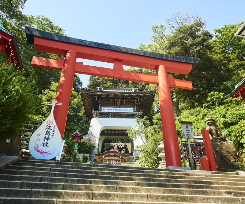 Enoshima Shrine is one of three major shrines in Japan where the goddess Benzaiten is enshrined. It’s said that a visit here will improve your luck in love, finances, and business. So if you're looking for luck in these areas, why not pay a visit to this shrine?