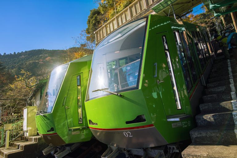 The Oyama Cable Car connects Oyama-Cable Station and Afuri-jinja Station in about 6 minutes. Its large windows offer views of the lush greenery.