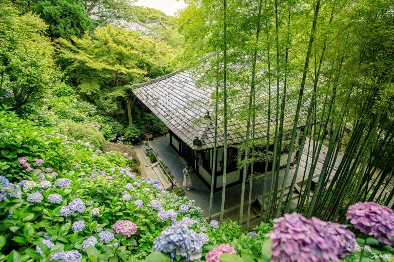 Hase-dera is renowned as one of Japan’s four great temples for viewing beautiful hydrangeas. In spring, cherry blossoms bloom, followed by hydrangeas in early summer, and in autumn the temple grounds are colored with vibrant red and yellow foliage. Seasonal flowers ensure that there is always something to enjoy throughout the year. Visitors can also admire the charming stone statues scattered throughout the temple grounds. From the observation deck, you can enjoy sweeping views of Kamakura’s townscape and the ocean, making Hase-dera a must-see destination.
