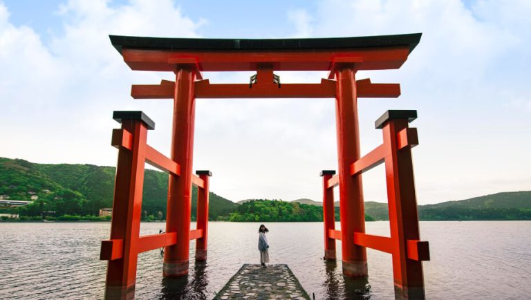 Hakone Shrine is one of the must-visit landmarks in Hakone. Founded in the Nara period (757 AD), it enshrines three deities known as "Hakone-no-Okami." By the nearby lake, there stands a large torii gate known as the "Torii of Peace", appearing to float on Lake Ashi, evoking a sense of reverence in those who behold it.