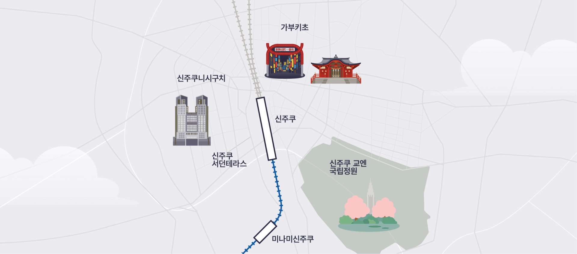 주요 교통 중심지이자 오다큐의 출발점인 신주쿠는 도시 속 모험과 힐링을 모두 즐길 수 있는 도쿄의 대표적인 지역 중 하나 입니다.