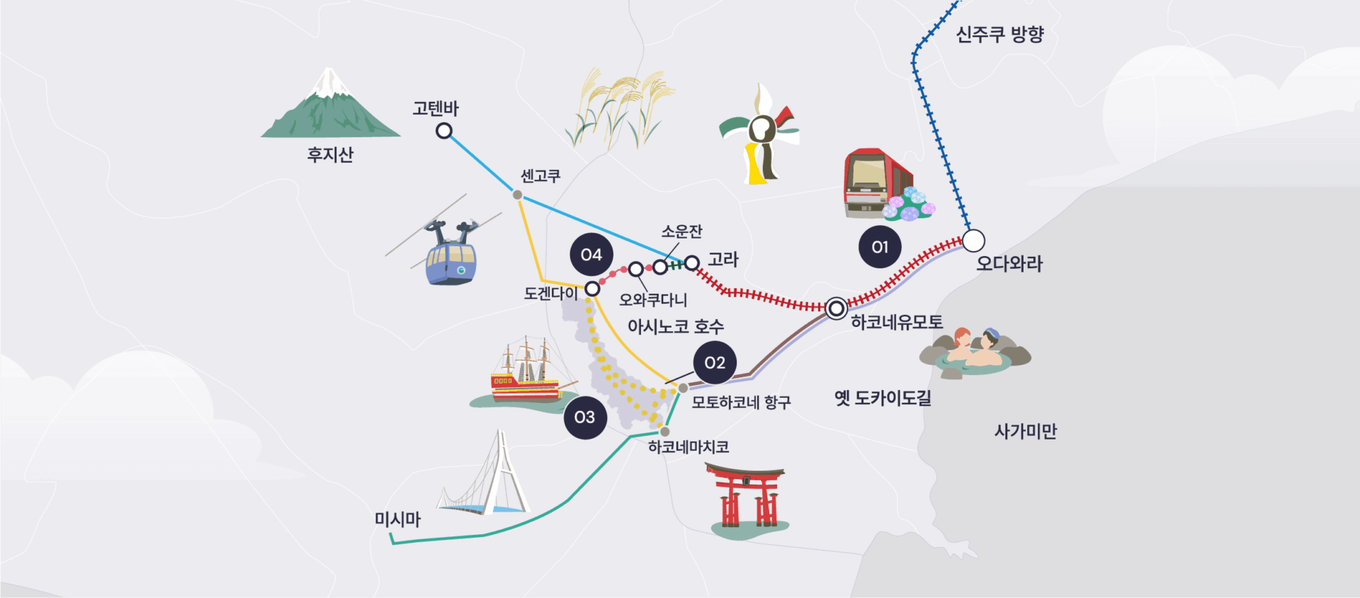 하코네 여행 시 꼭 방문해야 할 명소들이 가득 담겨 있어, 하코네의 매력을 마음껏 즐길 수 있는 코스입니다. 하코네 프리패스를 사용해 알뜰하게 여행해 보세요!