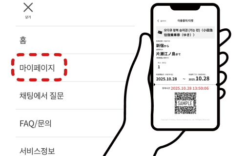 오다큐 디지털 티켓 공식 사이트 (EMot 온라인 티켓으) 로 티켓을 표시하려면 로그인 후