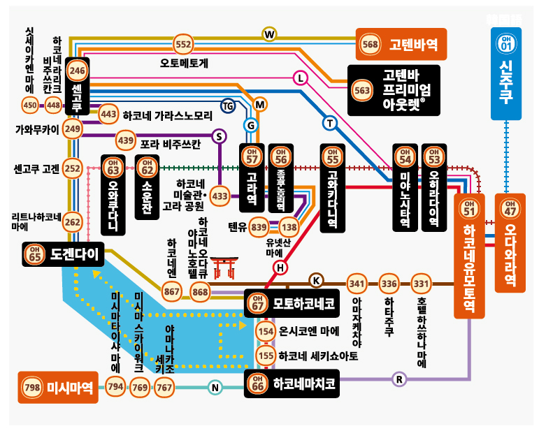 신주쿠 출발 하코네 프리패스를 이용하실 경우에는