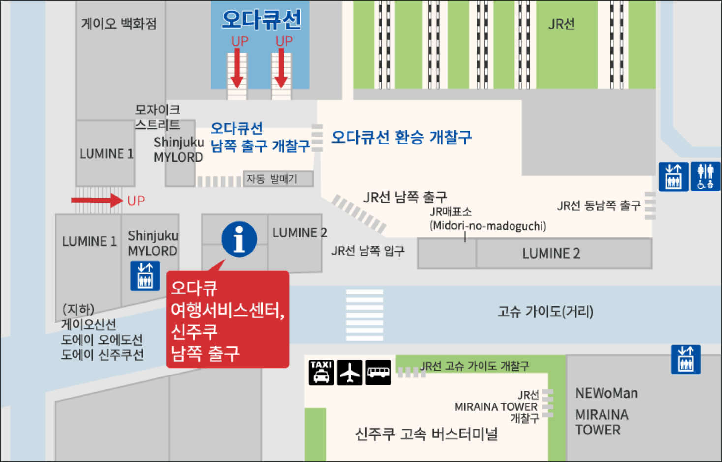 *현재 신주쿠역 대규모 공사로 인해 계단 및 에스컬레이터 등의 시설 위치가 변경되었으니 참고해 주시기 바랍니다.
