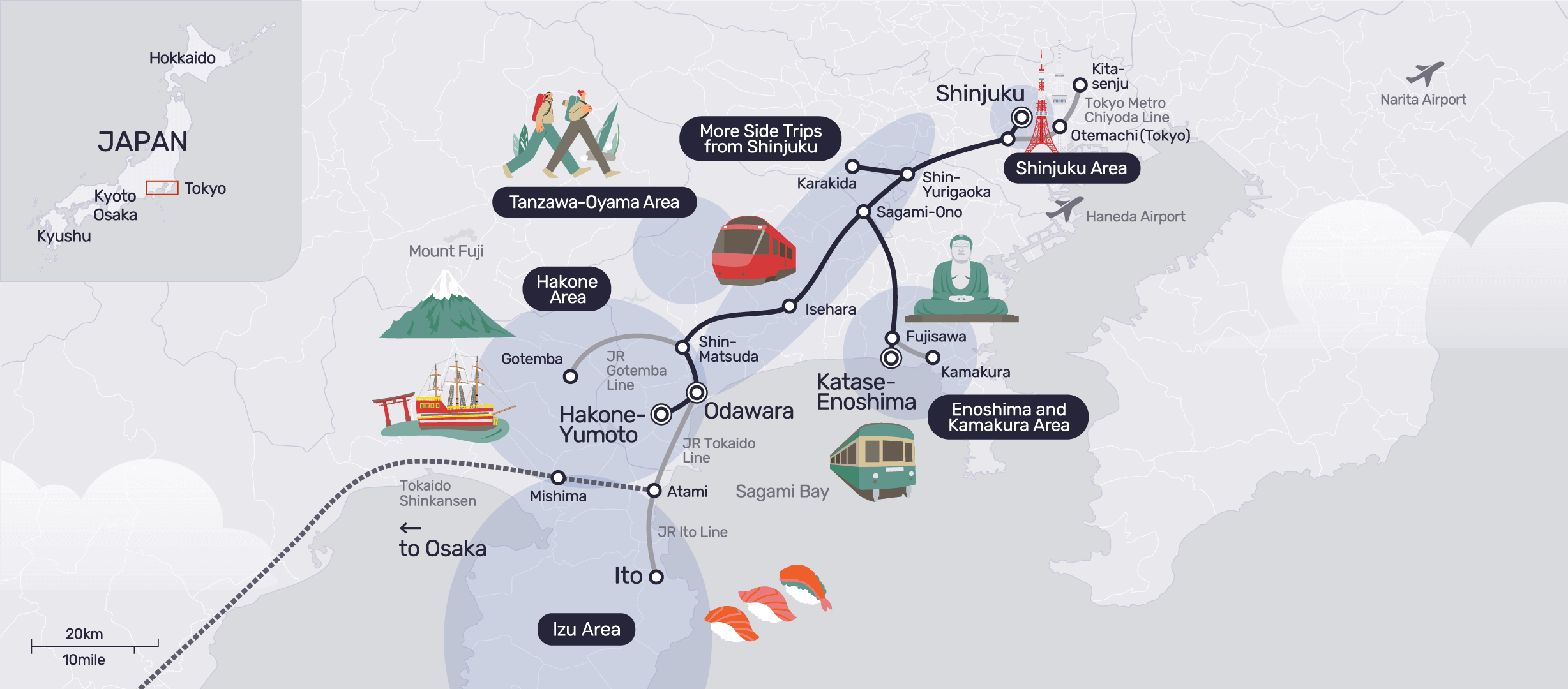 Enjoy a comfortable and scenic ride from Shinjuku to the heart of Hakone. With reserved seating and panoramic windows, it's the perfect start to your getaway. Skip the transfers and relax as beautiful landscapes roll by.