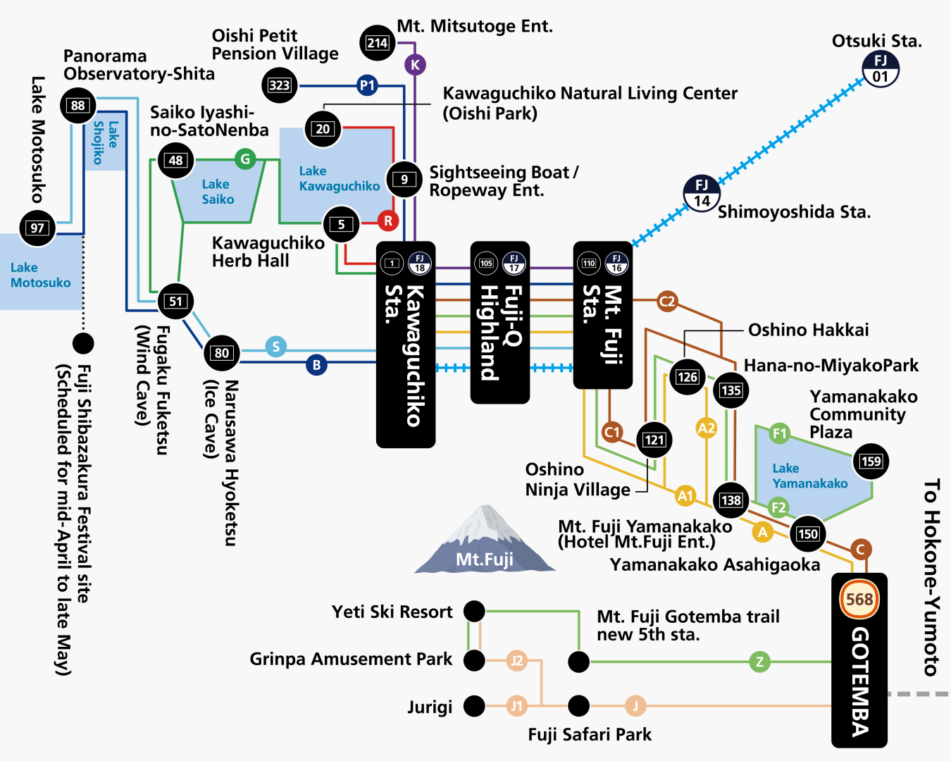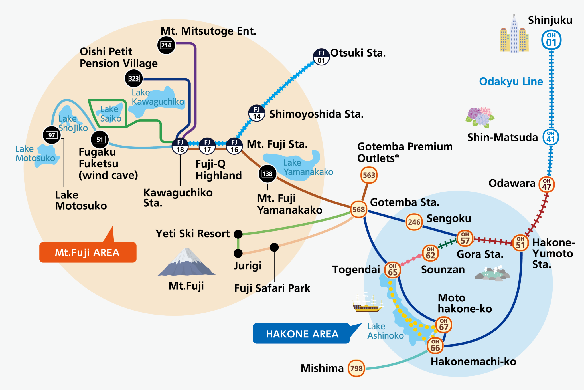 - Unlimited rides in the Mt. Fuji and Hakone areas.