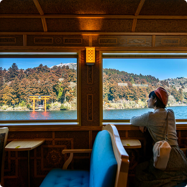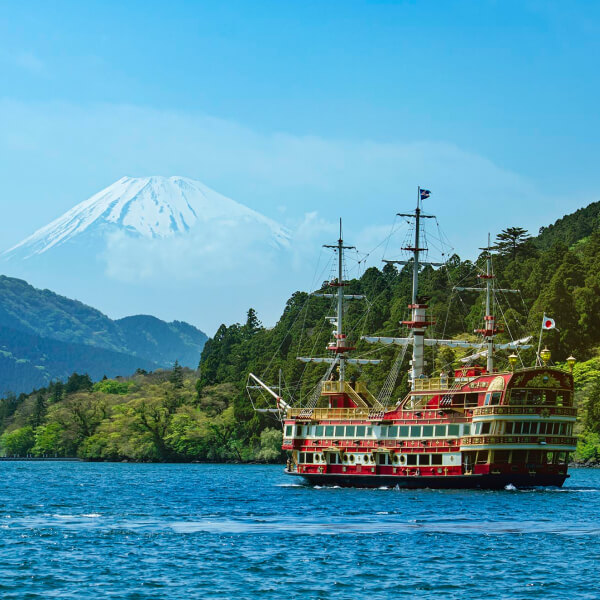 Take the Hakone Sightseeing Boat to enjoy a cruise on Lake Ashi while heading to Togendai Port. The three pirate ships each have luxurious and unique interiors, allowing you to relax and enjoy your time.
