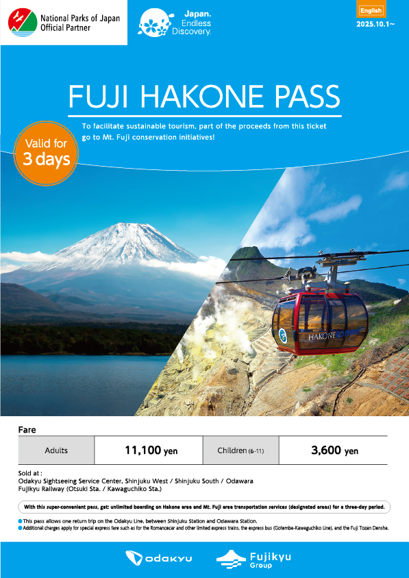 - Unlimited rides in the Mt. Fuji and Hakone areas.