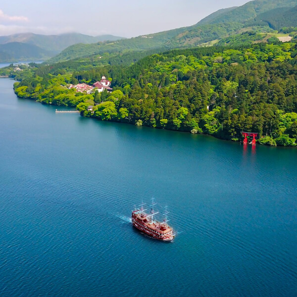 It takes about 15 minutes to walk from the hotel to Moto-Hakone Port, or you can use the hotel's free shuttle bus, which takes about 5 minutes. Board the Hakone sightseeing boat and head to Togendai Port while enjoying a 30-minute cruise on Lake Ashi. Step out onto the deck to be enveloped by the tranquility of the Hakone mountains.