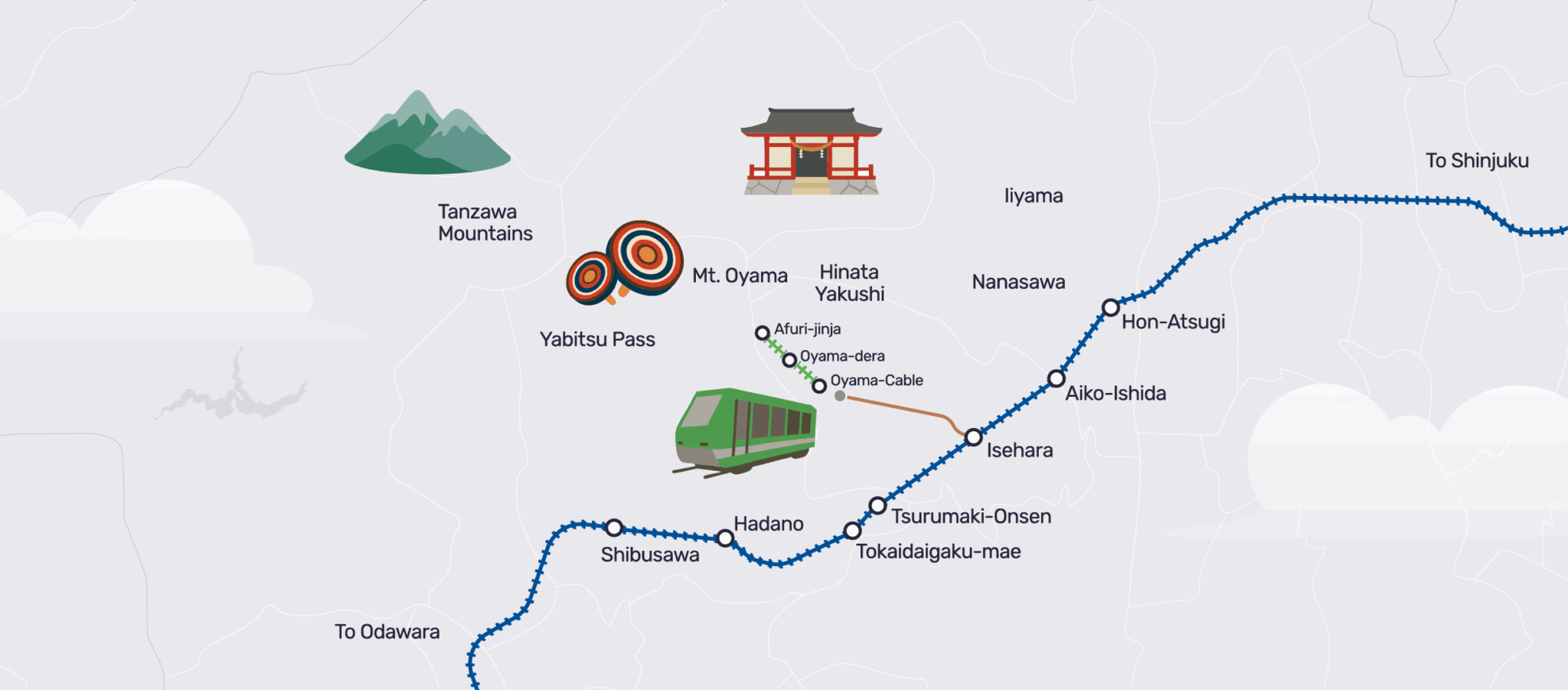 - Unlimited rides on Odakyu Lines, Kanachu Bus in designated areas and Oyama Cable Car (Ticket A only)