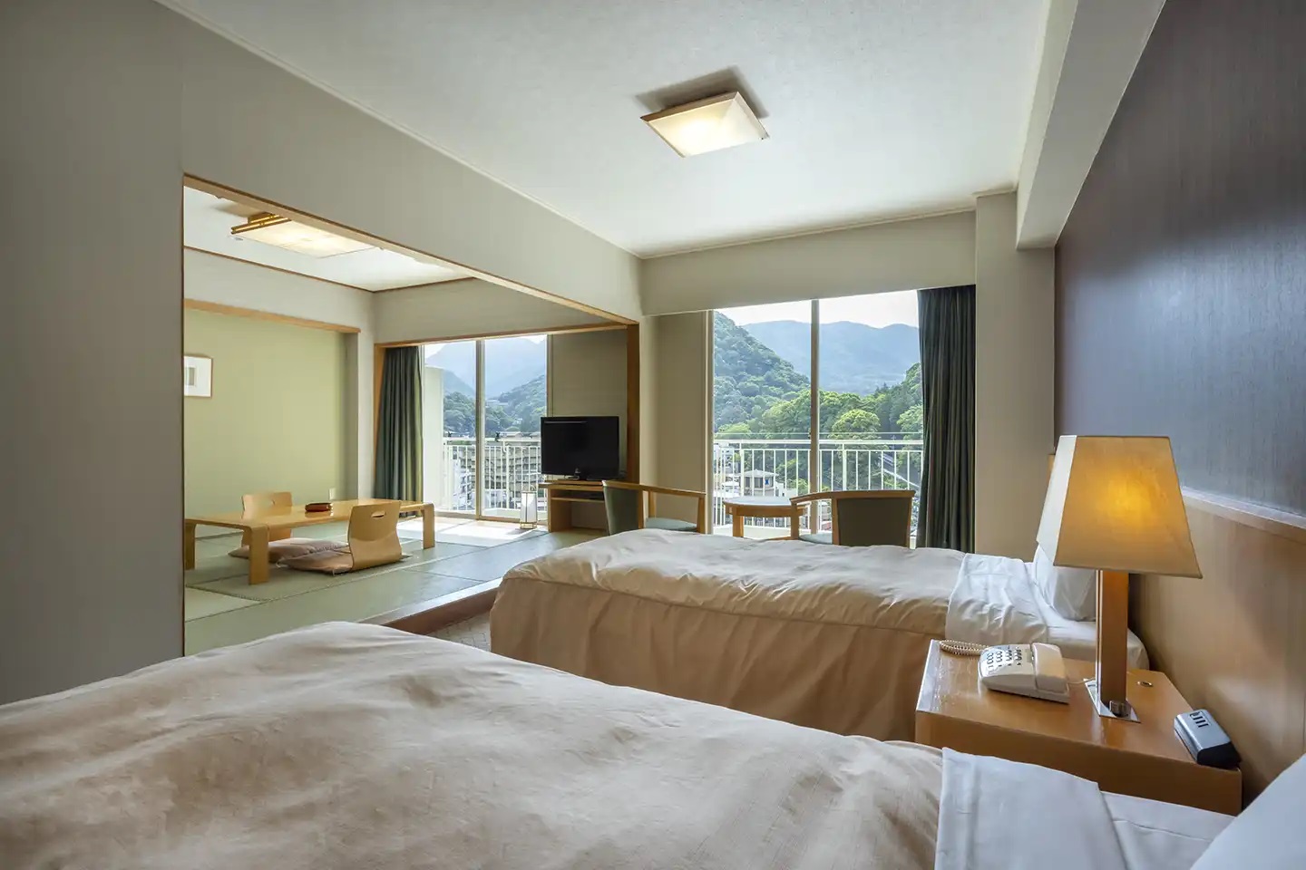 如果你想体验和室住宿,但又希望在舒适的床上入睡,可以选择标示为“和洋室”的房型。这种房型结合了传统和室与舒适床铺的特点。