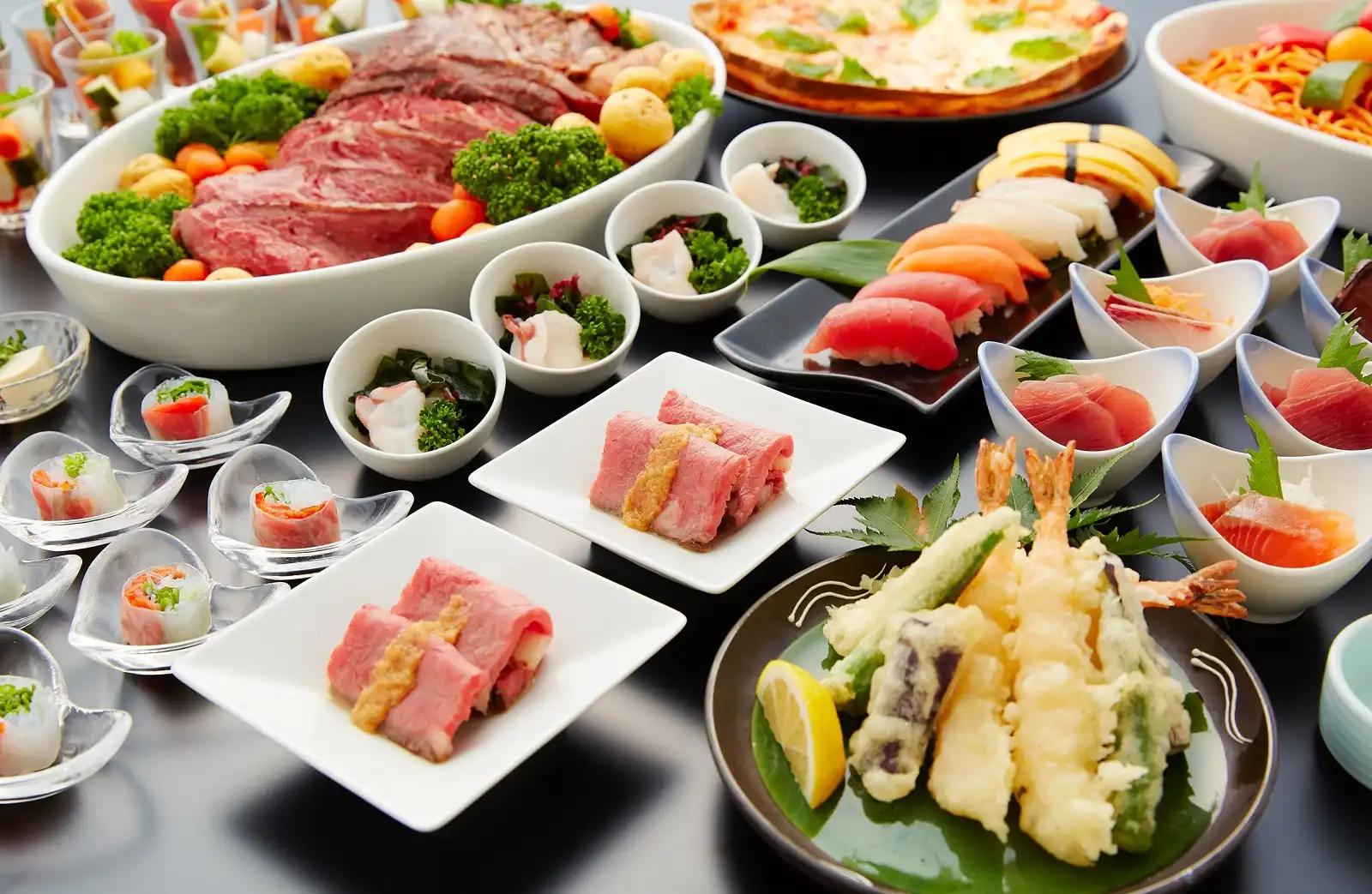 -品尝由丰富经验厨师烹制约50种日式和西式的自助餐菜肴。
