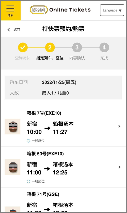 此外,没有箱根周游券和浪漫特快列车的套票供选择。