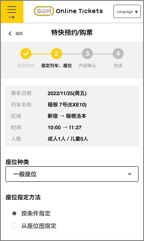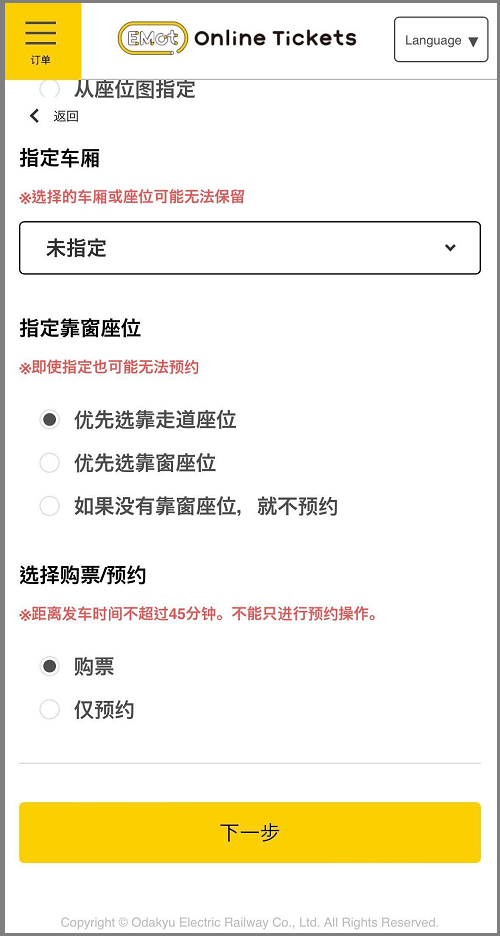 浪漫特快票可以在您乘车日期的一个月前的日本时间上午10点开始购买。