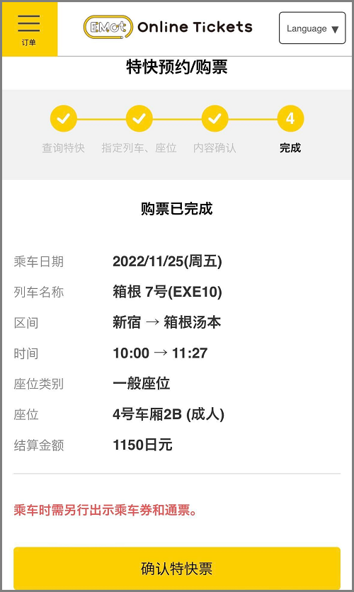 ※乘车时还需要提供乘车券和周游券。