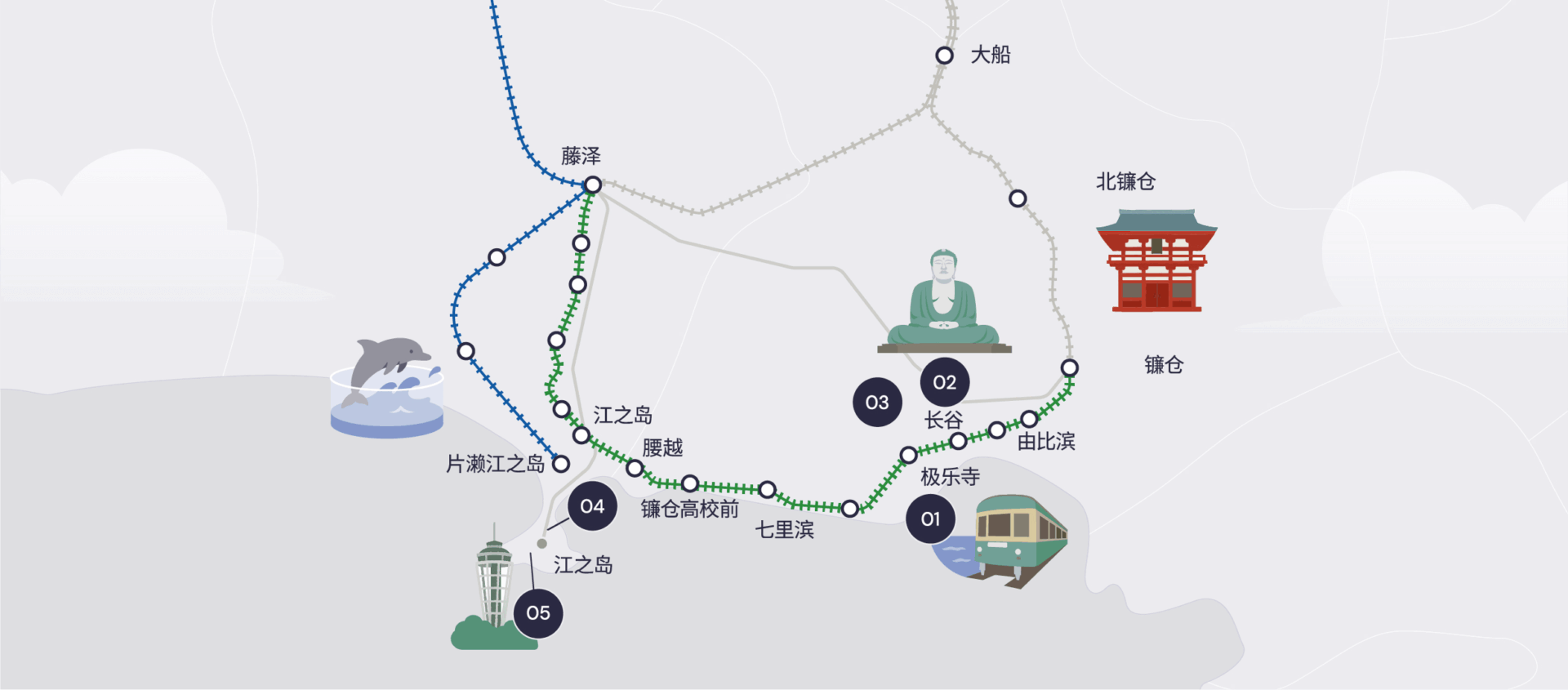 江之岛和镰仓有许多受欢迎的观光景点。本日归行程将为您介绍覆盖该区域所有必看的亮点景点。