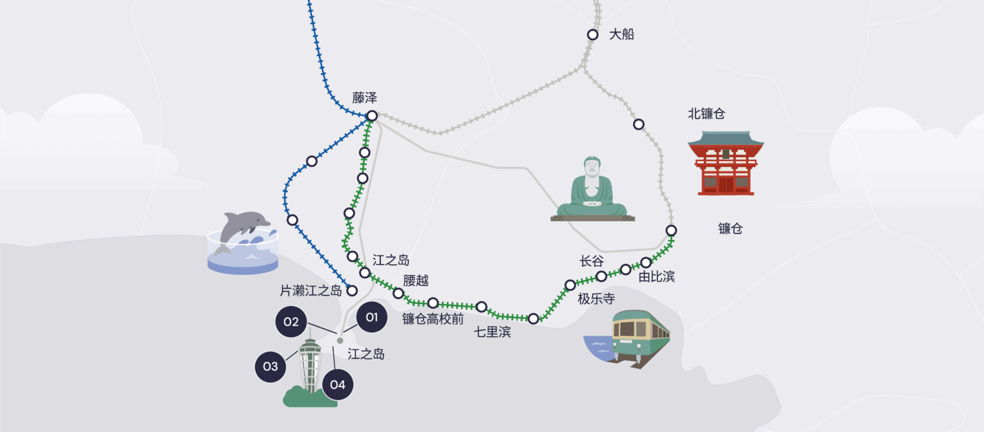 江之岛是一座兼具自然美与丰富历史的岛屿,拥有日本屈指可数的绝景。从经典的观光景点到隐藏的秘境,本一日行程网罗了江之岛的各种精彩景点。