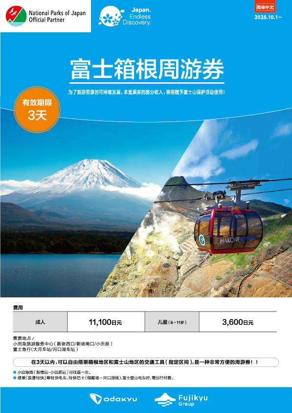 富士箱根周游券是一张超值车票,可在富士与箱根两大区域内无限次乘坐各类交通工具。