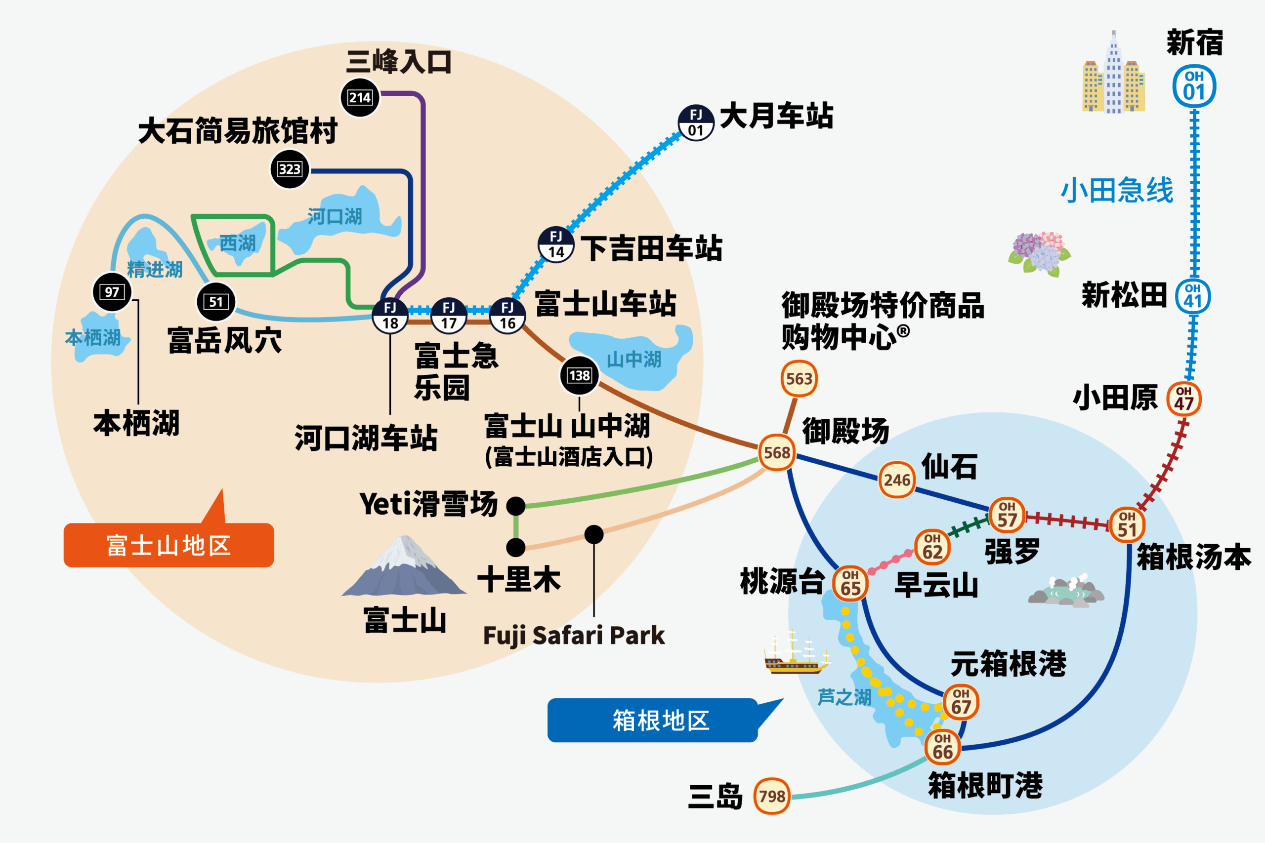 为期3天2晚的行程安排,将带您使用富士箱根通票畅游箱根和富士山周边地区。