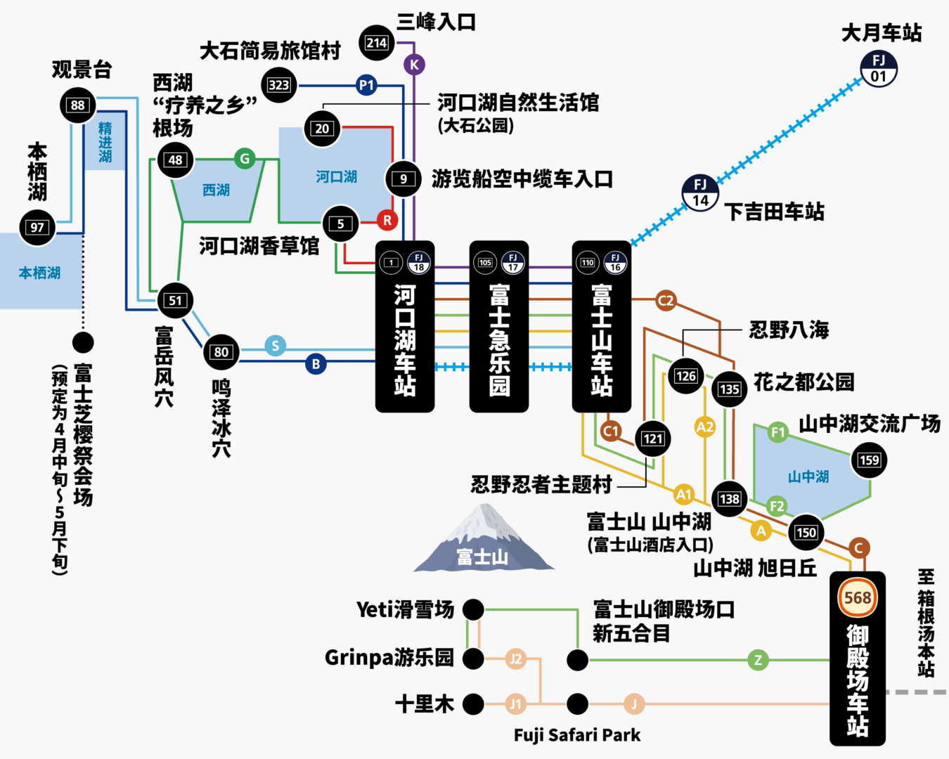 - 富士山及箱根地区无限次乘坐交通票。