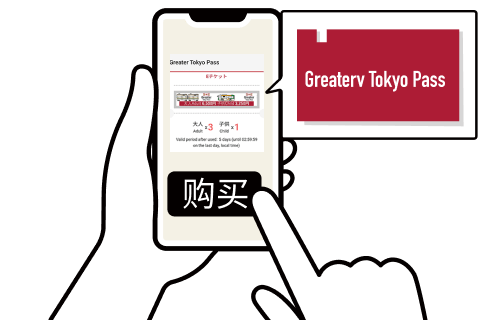 上车或下车时,请向站务员、乘务员或巴士司机出示“大东京通票”使用中的画面。