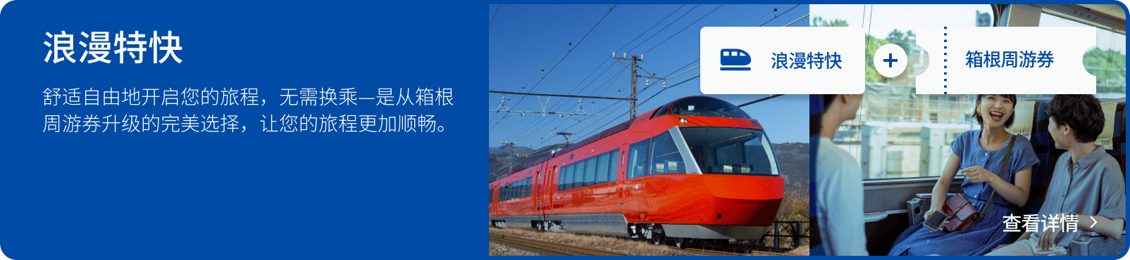 浪漫特快是从新宿前往箱根的便捷交通方式。从新宿直达箱根汤本约需80分钟。所有座位均为指定席,确保旅途舒适。通过宽大的车窗,您可以欣赏沿途不断变化的城市风光、河流、群山及乡村景色,享受一路美景。